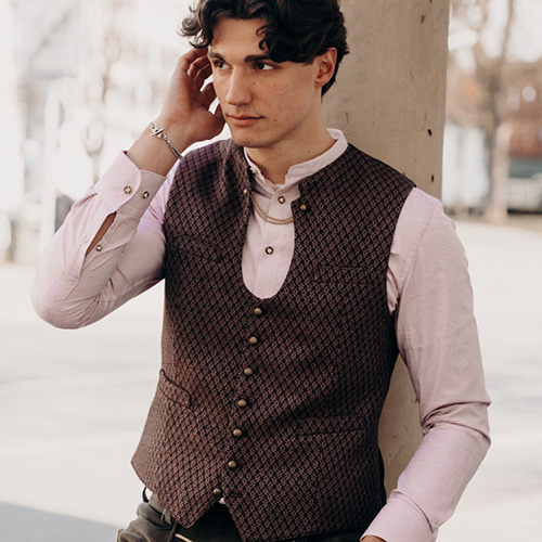 Auch Bräutigame finden bei uns ihren stilvollen Auftritt: eine exklusive Hirschlederne, kombiniert mit feiner Weste, modernem Janker und edlen Accessoires – alles harmonisch aufeinander abgestimmt, alles aus einer Hand.