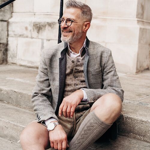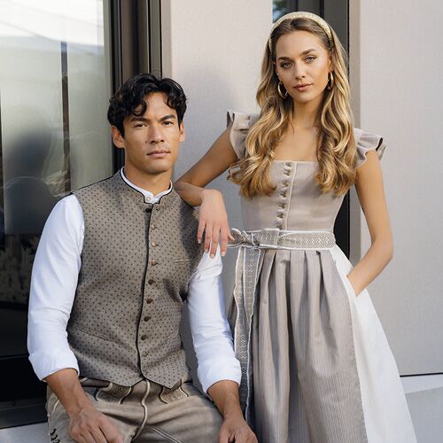 Auch Bräutigame finden bei uns ihren stilvollen Auftritt: eine exklusive Hirschlederne, kombiniert mit feiner Weste, modernem Janker und edlen Accessoires – alles harmonisch aufeinander abgestimmt, alles aus einer Hand.